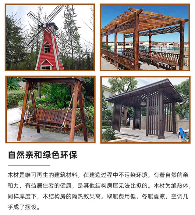 熱門關鍵詞:木屋,涼亭、景觀水車、花架、風車、秋千、售賣屋